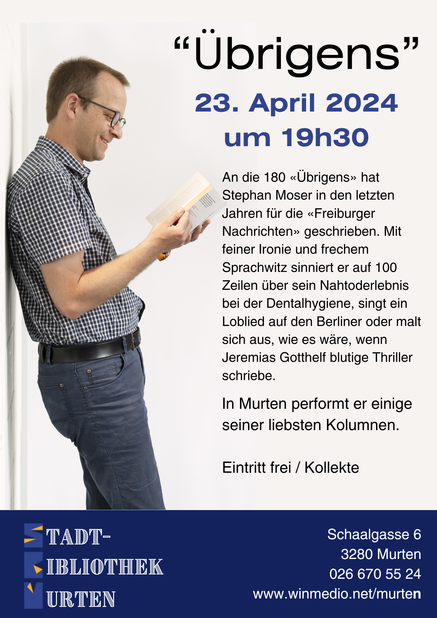 Übrigens: Am 23. April lese ich meine liebsten Kolumnen in der Stadtbibliothek Murten. 19.30 Uhr.